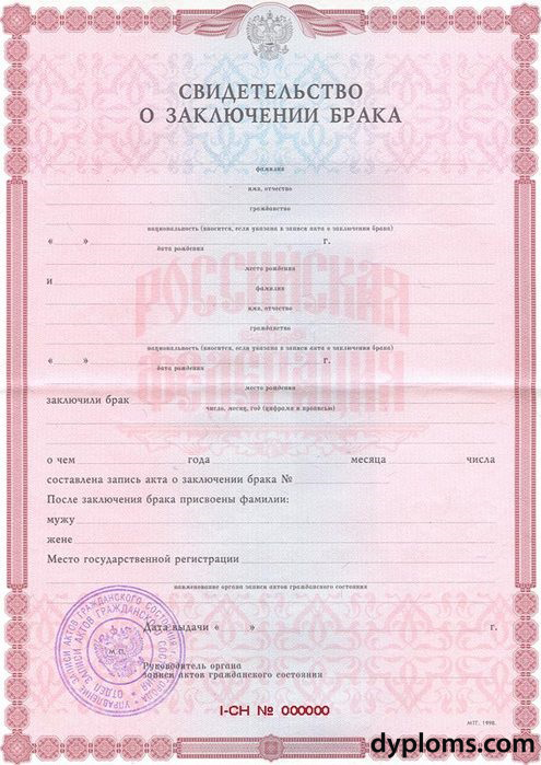 Может создаться впечатление, что свидетельство о браке — всего лишь формальность, поскольку его оформление подчиняется единым правилам. Тем не менее, отсутствие этой бумаги способно повлечь за собой значительные осложнения. Если вы не можете его найти или оно утрачено, не торопитесь идти в ЗАГС: процесс восстановления займет много времени. Более рациональным решением будет купить свидетельство с регистрацией, оформив заявку на нашем портале. Наши квалифицированные сотрудники изготовят для вас документ в полном соответствии с государственными требованиями всего за семь дней.