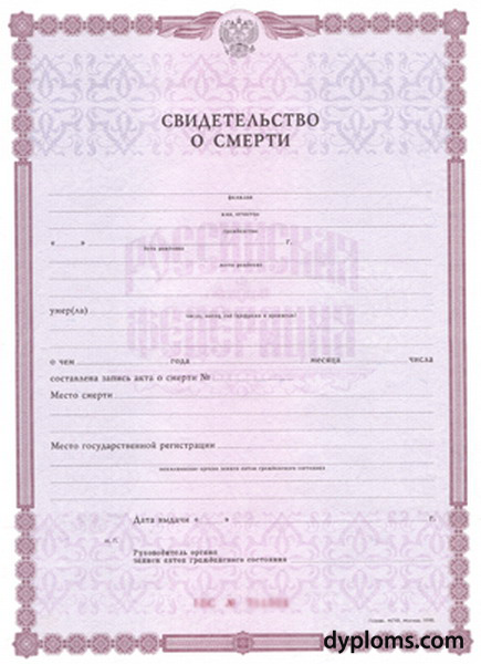 Обращаясь к нам, вы получаете возможность быстро купить свидетельство о смерти с регистрацией, оформив онлайн-заявку и при необходимости получив консультацию наших экспертов. Документ изготавливается на качественной бумаге с соблюдением всех требований к подписям и печатям.